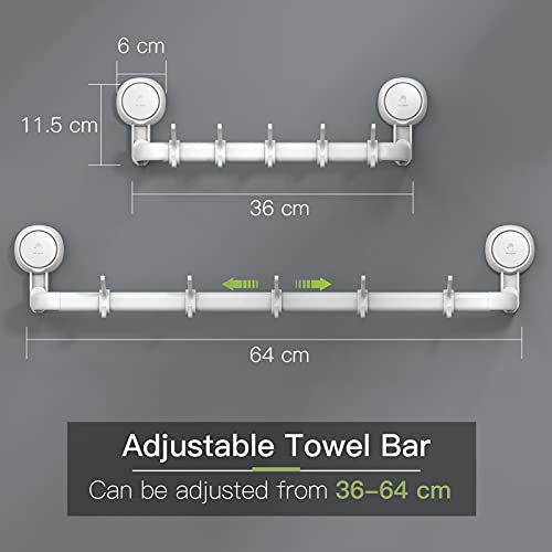 Ulinek Porta Asciugamani Bagno Ventosa 64CM Appendi Asciugamani Regolabile da Parete Senza Foratura 2 in 1 Portaasciugamano da Bagno con 5 Ganci Rimovibili per Bagno Cucina, 10KG