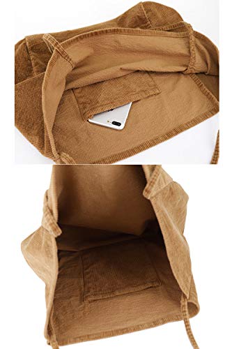 Ulisty Donne Grande Velluto a coste Borsa Tote Retro Borsa a tracolla Casuale Sacchetto Moda Borsetta rosa