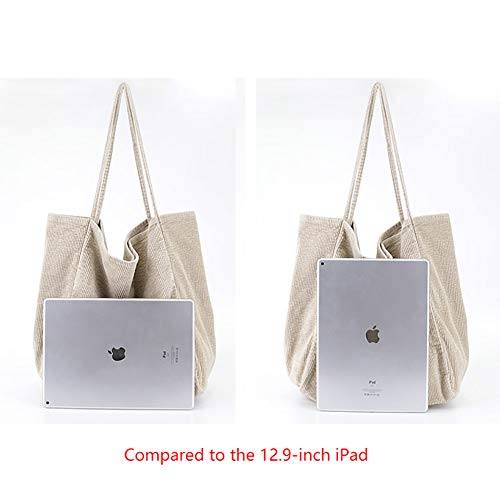 Ulisty Donne Grande Velluto a coste Borsa Tote Retro Borsa a tracolla Casuale Sacchetto Moda Borsetta Marrone