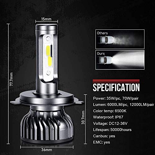 ★【Piccola creatività】 Corpo piccolo per una vestibilità forte, può essere utilizzato su modelli di veicoli al 99%. Corpo piccolo ma non accontentarsi di mediocrity, fibbia regolabile a 360 gradi, perseguendo il tipo di luce perfetto per voi. Nessun abbagliamento al conducente opposto, nessun punto scuro o aree ombreggiate. Compatibile con H4 HB2 9003 H. i/Lo Lo Lampadine per fari a LED, si applicano come lampadine per fari a LED, lampadine fendinebbia a LED e kit di conversione luci diurne DRL.