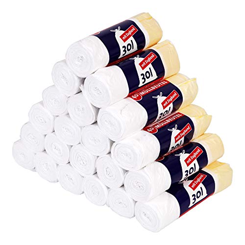 ULITH - Sacchetti per la spazzatura con pratico cordoncino, 30 l, adatti per casa e ufficio, 25 rotoli da 40 pezzi, colore: Bianco
