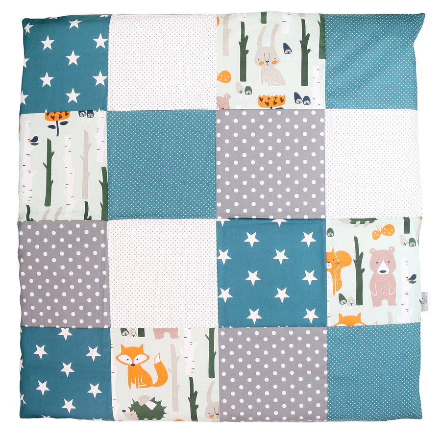 Con la biancheria da letto per neonati in look patchwork, potrete trasformare il lettino in una piccola oasi di benessere per il vostro bambino. La biancheria da letto è disponibile in bellissimi colori con motivi graziosi. Con le dimensioni standard di 80 x 80 centimetri per il piumone e 35 x 40 centimetri per il cuscino, la biancheria da letto per bambini si adatta a tutti i piumoni e i cuscini per bambini disponibili in commercio. Il rovescio della biancheria da letto per bambini è discretamente punteggiato. Design Sul davanti sono stati combinati diversi motivi per creare un'allegra fantasia. Un dettaglio importante è la cerniera in plastica nascosta senza maniglia scorrevole. È incorporata nella zona dei piedi del copripiumino, mentre la federa è dotata di una pratica zip da hotel. Per la biancheria da letto per bambini è stato utilizzato solo cotone particolarmente morbido certificato OekoTex e testato per le sostanze nocive. Prodotta in una piccola azienda familiare dell'UE, la biancheria da letto per la culla è lavabile in lavatrice fino a 40°C. Dettagli del prodotto: 80 x 80 e 35 x 40 centimetri (piumino, cuscino) Zip in plastica nascosta senza maniglia scorrevole Cuscino con chiusura a hotel sul retro Biancheria da letto per bambini con discreto rovescio a pois Materiali: 100% cotone certificato secondo lo STANDARD 100 da OEKO-TEX®: 19.0.71418 HOHENSTEIN HTTI Soddisfa i requisiti più elevati per i prodotti per neonati e bambini, grazie alla classe di prodotto I. Materiale piacevolmente morbido Lavabile in lavatrice fino a 40°C Vantaggi generali: Adatto per tutti i piumoni e i cuscini nelle misure standard per neonati Ideale per lettini, culle e carrozzine Prodotto in una piccola azienda familiare dell'UE Si abbina ai colori di tutti i prodotti ULLENBOOM della gamma