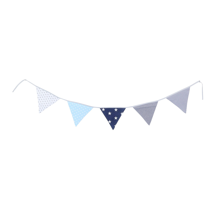 lunghezza 22 cm 5 gagliardetti in tessuto Cinghie di fissaggio lunghe 30 cm su ogni lato Materiali: 100 % cotone certificato ÖkoTex Testato per sostanze nocive e antiallergico Lavabile in lavatrice fino a 40°C Vantaggi generali: Disponibile in diverse dimensioni Bella decorazione per il lettino o come decorazione a parete Ideale per pareti ancora vuote Prodotto in una piccola impresa familiare dell'UE Adatto a tutti i prodotti di questa serie ULLENBOOM