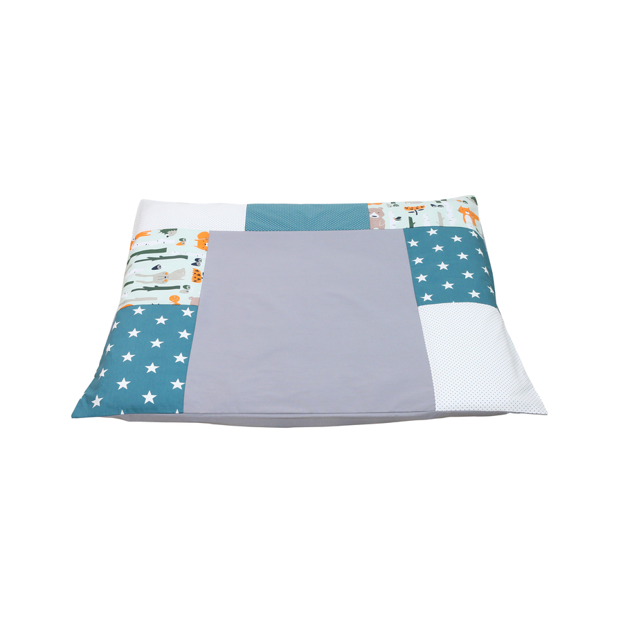 Il rivestimento alla moda in un allegro e colorato design a mosaico si adatta a tutti i comuni fasciatoi. Grazie alla pratica chiusura sul lato posteriore è possibile cambiarla rapidamente e facilmente. Per i fasciatoi Ullenboom utilizza solo cotone certificato ÖkoTex 100, morbido e antiallergico, che i bambini trovano particolarmente piacevole sulla loro pelle. Lavabile in lavatrice fino a 40°C. Dettagli del prodotto: 75 x 85 cm SUperficie di riposo: 60 x 50 cm Rivestimento facile da sostituire Chiusura sulla parte posteriore Bordo largo 20 cm con 7 toppe in tessuto Schienale e piano di sdraio realizzati con lo stesso tessuto La fornitura comprende solo il rivestimento, NON il materassino fasciatoio. Materiali: 100 % cotone morbido di qualità ÖkoTex Standard 100, classe di prodotto I, certificato (specialmente per neonati e bambini) Rivestimento lavabile a 40°C Vantaggi generali: Sostituzione facile e veloce Copertina in morbido cotone per una piacevole sensazione sulla pelle del bambino Rivestimenti disponibile in altre fantasie Prodotto in una piccola impresa familiare dell'UE Il design si adatta ad altri prodotti ULLENBOOM di questa serie.