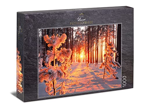 Ulmer Puzzleschmiede - Puzzle "sole d'inverno" - classico puzzle da 1000 pezzi - paesaggio della neve nella nostra casa - Caldi raggi solari, luce e ombre nella foresta invernale
