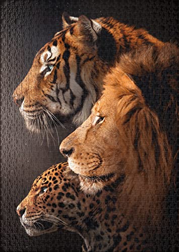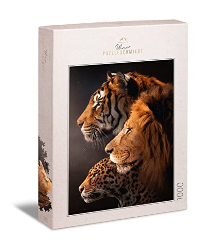 Ulmer Puzzleschmiede - Puzzle "The Big Three" - Colossale motivo gatto predatore con tigre, leone e leopardo - Puzzle con animali da 1000 pezzi con i 3 grandi cacciatori