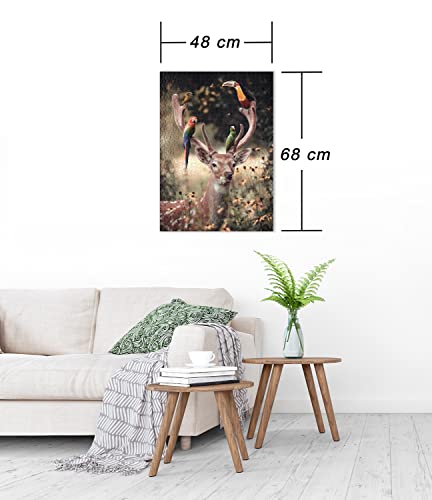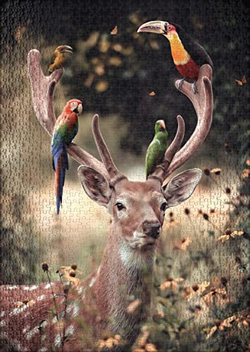 Scopri un puzzle fantasioso animale con una simbiosi spirituale di cervo e uccello: i pappagalli colorati danno una splendida compagnia di cervo - Collezione puzzle "Art & Animals"