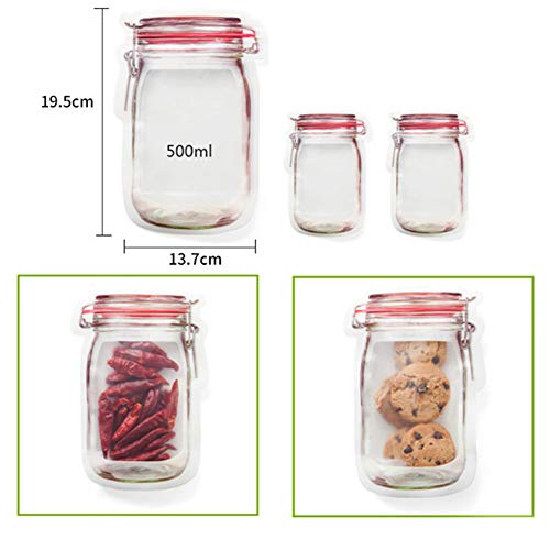 Ulofpc Borse riutilizzabili per alimenti con cerniera Borse a forma di vaso Mason Snack a chiusura ermetica Conservazione alimentare Sacchetti a prova di perdite