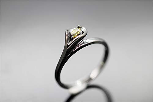 ♥ Questo anello è caratterizzato da una forma di fiore di calla e ha 1 pietra di zirconia cubica verde gialla di alta qualità e mostra una straordinaria chiarezza arricchita proprio come il vero diamante