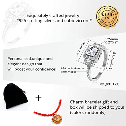 Uloveido in Argento Sterling 925, FEDI Nuziali quadrate con Diamanti simulati, Anelli trasversali per Anniversario/Fidanzamento/Gioielli da Festa per Donne