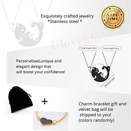 Uloveido Un paio di collane in titanio carino gatto puzzle abbinato coppia collana in acciaio inox animale regalo di San Valentino per ragazzo e ragazza SN156, Cristallo,