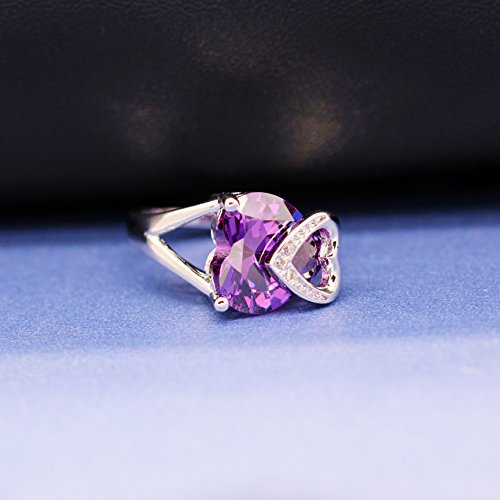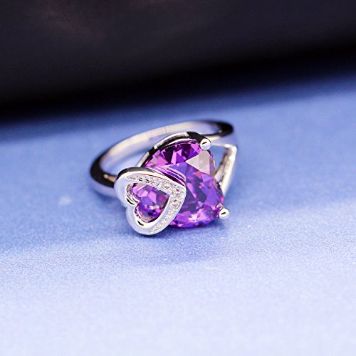 Uloveido Donna Platino Placcato Cuore d'Amore Viola Cubic Zirconia Solitario Accento Anelli di Fidanzamento per Matrimonio Donne