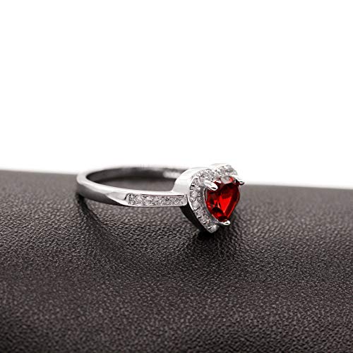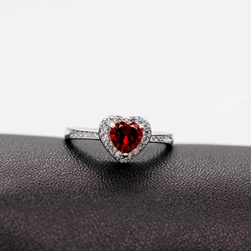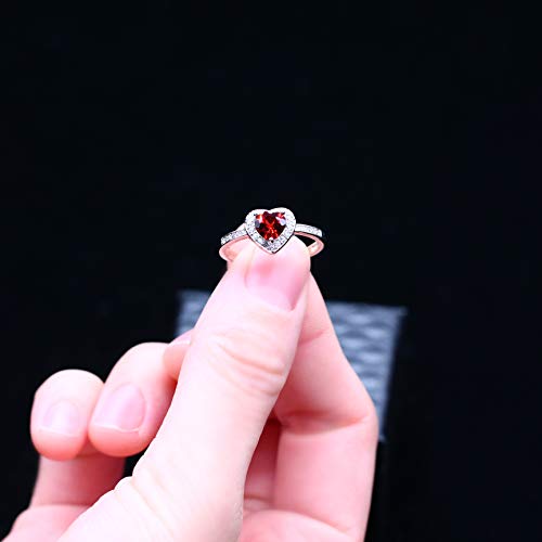 Uloveido S925 Gioielli in Argento Sterling Red Heart of Ocean 0.8ct Autentico Granato Amore per Sempre Halo promessa Anello Nuziale per Donne Ragazze con Scatola in Velluto