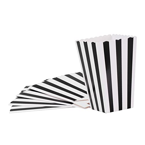 ULTECHNOVO Scatole Da 24 Pezzi Cartoni Di Popcorn Nero e Scatole Di Popcorn Di Carta Secchio Per Popcorn Riutilizzabile Contenitore Per Popcorn a Strisce Scatola Banda