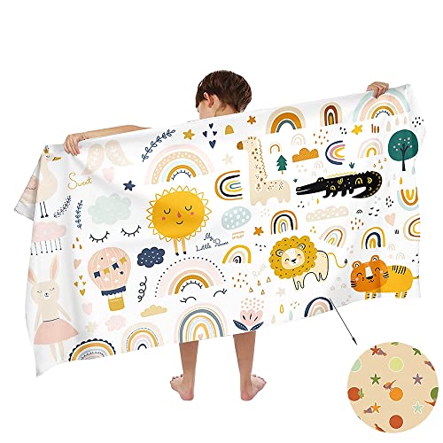 Ulticool - Asciugamano Arcobaleno Animali - Bambino Ragazza Ragazzo - Asciugamano ad asciugatura rapida in microfibra - 140 x 70 cm - per Viaggi Fitness Gym Sport Spa Yoga - Beige