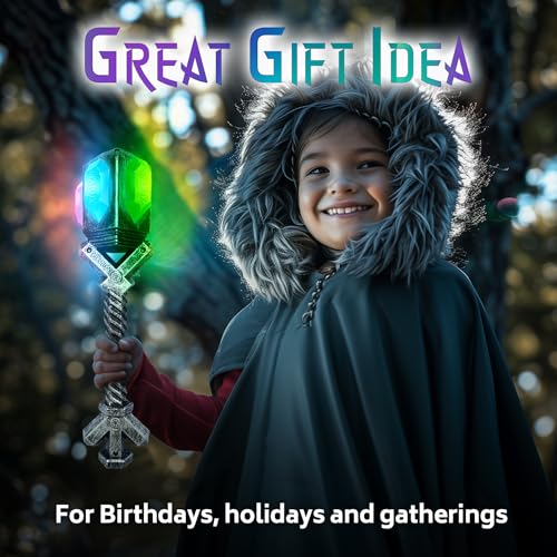 ISPIRARE L'IMMAGINAZIONE: costume vichingo, giochi di finzione o giochi all'aperto per bambini: lo scettro incluso e le gemme bagliore nel buio ispirano! Batterie incluse e sostituibili (tipo CR1220)