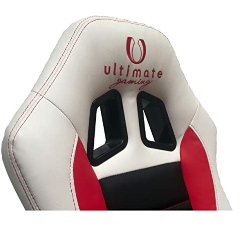 Ultimate Gaming Toro Sedia da Gioco, Pelle Sintetica, Bianco, Nero e Rosso, Mediano