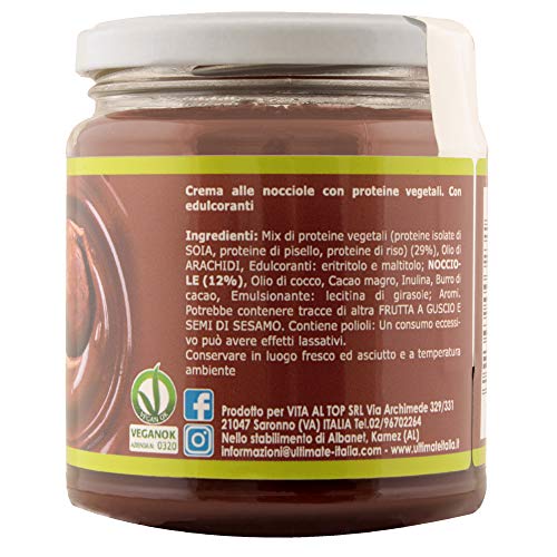 Ultimate Italia Protein Cream Veg Nocciolinella - Crema Proteica Spalmabile Vegana Col 30% Di Proteine Vegetali - 100% Vegetale - Con Anacardi E Mandorle - Senza Glutine - Low Carb, 250 G