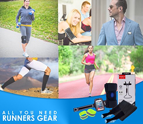 Ultimate running Gear - All-in-One Pack per jogger, gli appassionati di sport con cuffie bluetooth, calze a compressione, tutore per ginocchio, cintura da corsa, da porta telefono, riflettente polsiere