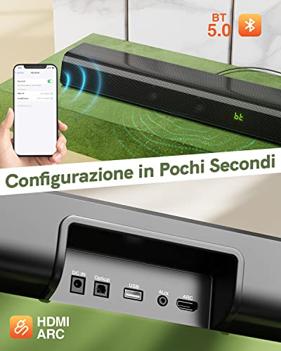 ULTIMEA 120W Soundbar TV, Soundbar con Bassi Profondi+ per Piccole TV, 5 EQ/DSP Surround TV Sound, LED, Bluetooth Sound Bar per TV 4K HD, Compatible con ARC/Ottico/USB/AUX