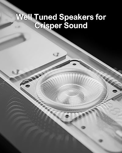 Suono più intenso e ricco: Questa soundbar 2.2 ch per TV è equipaggiata con 2 tweeter e woofer integrati, offrendo un suono bilanciato con bassi potenti e alti chiari. Inoltre, dispone di una connessione subwoofer extra per collegare un subwoofer esterno (subwoofer non incluso).