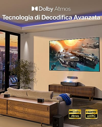 Decodifica avanzata Dolby Atmos: Compatibile con Blu-ray, streaming (Netflix, Prime Video) su TV e set-top box. Supporta la decodifica/riproduzione completa se il contenuto è abilitato al Dolby Atmos. L'esclusiva tecnologia BassMX di Ultimea arricchisce le basse frequenze, consentendo di regolare i bassi per ottenere un basso rimbombante e pulsante.