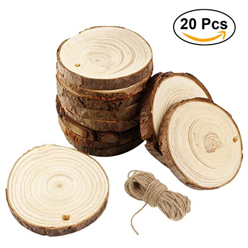 ULTNICE 20pcs Pezzi legno pezzi fichi Dischi Diy pezzi di legno per centri artigianali Wedding 10-12CM con jute twine