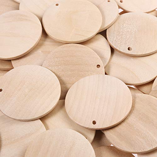 ULTNICE - Dischi di legno per decorazioni, rotondi, con foro, per decorazioni fai da te, oltre 50 pezzi, peso: 180 g