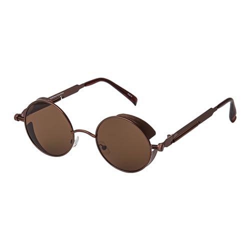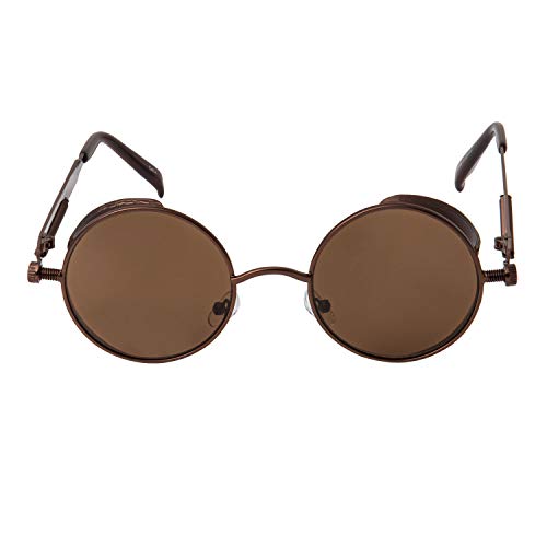UltraByEasyPeasyStore Ultra Marrone Rotondi Steampunk Occhiali da Sole Retro Stile Metallo UV400 Protezione Unisex Donna Uomo Premium Cyber Circolari Gotico Cosplay Unisex