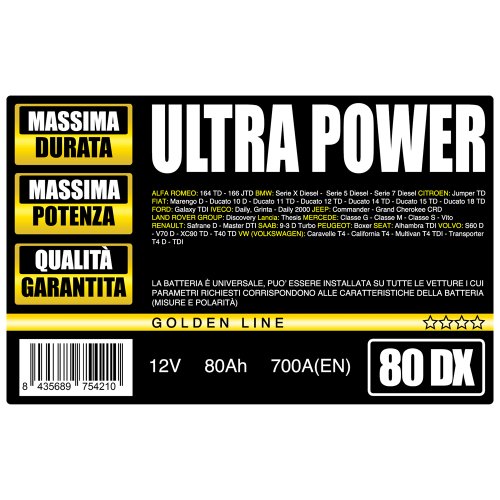 ULTRA POWER Batteria per auto 80Ah DX 700A pronta all'uso lunga durata e potenza