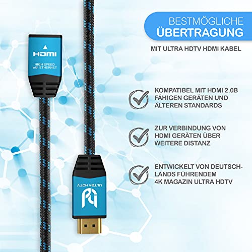 Ultra HDTV Cavo Prolunga HDMI - 0,5m 4K Premio HDMI 2.0b, Maschio a Femmina, HDR, ARC, 3D, Ethernet, PS4, Xbox, Nylon Intrecciato, UHD 2160P, High Speed