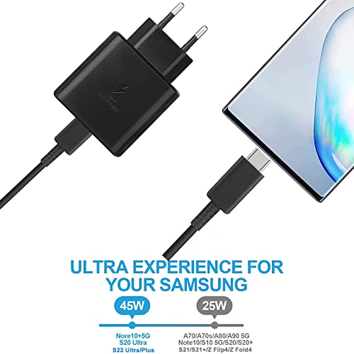 S23 Ultra Rapido Caricabatterie USB C 45W PPS & PD Compatibile con Samsung Galaxy S22 S21 S20 Ultra/Plus, Note 20 Ultra, Note 10 Plus, Tablet PC S8 S7 Ultra/Plus/FE, Caricatore Alimentatore Type C