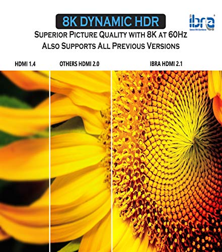 CAVO HDMI 2.1 IBRA: questo cavo HDMI soddisfa i più recenti standard 2.1, 4: 4: 4 chroma che supporta una gamma di risoluzioni elevate supporta video 8K a 60Hz e video 4K a 120Hz. collega LETTORI BLU-RAY 8K / 4K, SMART 3D, MEDIA PC, PS4, PS3, Xbox One, Xbox 360, Roku, computer e altri dispositivi abilitati HDMI