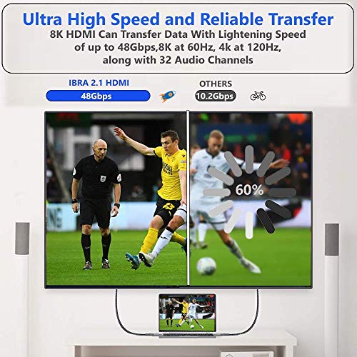 Cavo HDMI IBRA 2.1 Cavo 8K Ultra High Speed 48Gbps | Supporta 8K@60HZ, 4K@120HZ, 4320p, compatibile con Fire TV, supporto 3D, funzione Ethernet, 8K UHD, 3D-Xbox PlayStation PS3 PS4 PC - 3M
