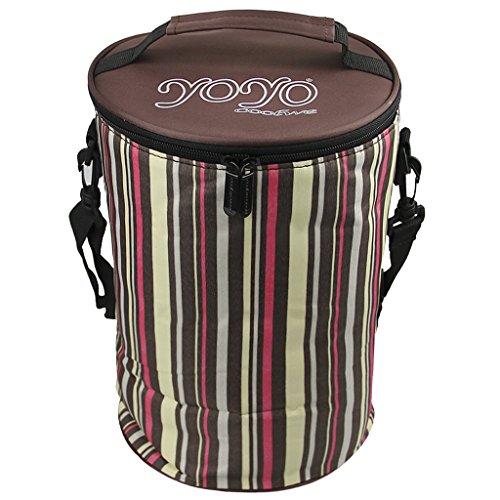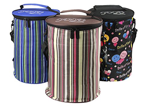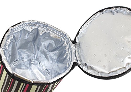 Ultra spessa rotonda cilindro borsa termica porta pranzo Tote Baby latte vettore cibo freddo Ice bag borsa con tracolla d20.5 x H30 CM, blu a strisce/Smile Face/caffè Stripe Coffee Stripe