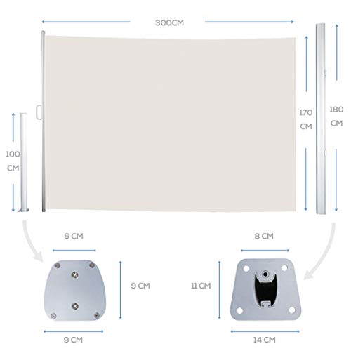 Ultranatura Tenda laterale Maui, tenda aparete laterale estensibile, tenda rullo laterale per balcone, terrazza e giardino, sole, vento e privacy protezione, robusta, 300x180 cm (LxH), Crema