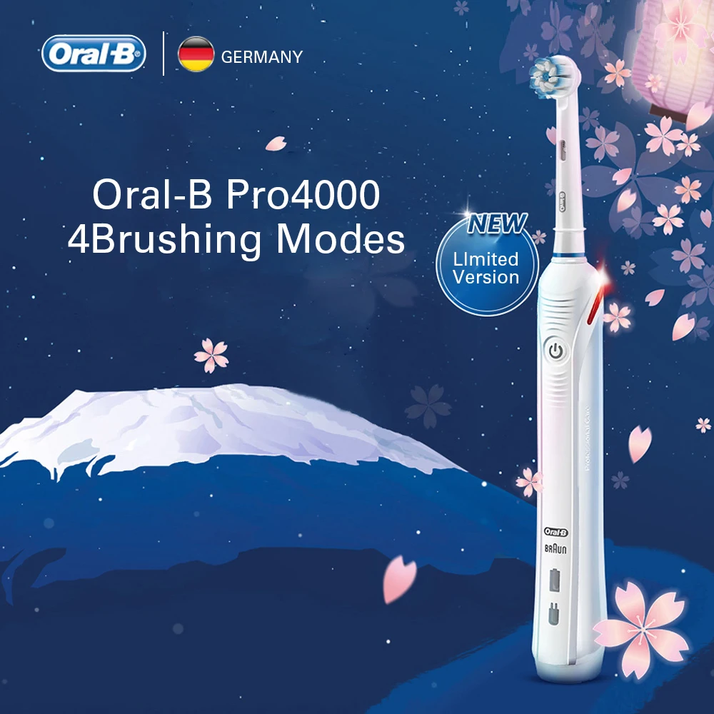 Oral B Ultrasonic Electric Toothbrush Rechargeable Teeth Whitening PRO4000 3D Smart Tooth Brush 2 Replacement Brush Teeth Heads