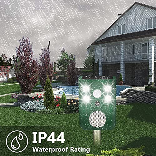 Repellente per animali ad ultrasuoni: il repellente per animali solare Tulov emetterà automaticamente frequenze ultrasoniche, una forte luce LED flash e suoni per tenere gli animali lontani dal tuo giardino con sensibilità e frequenza complete. Le 4 potenti luci scapperanno facilmente gli animali di notte. Senza sostanze chimiche e nessun danno all'ambiente, agli animali, in particolare all'uomo.