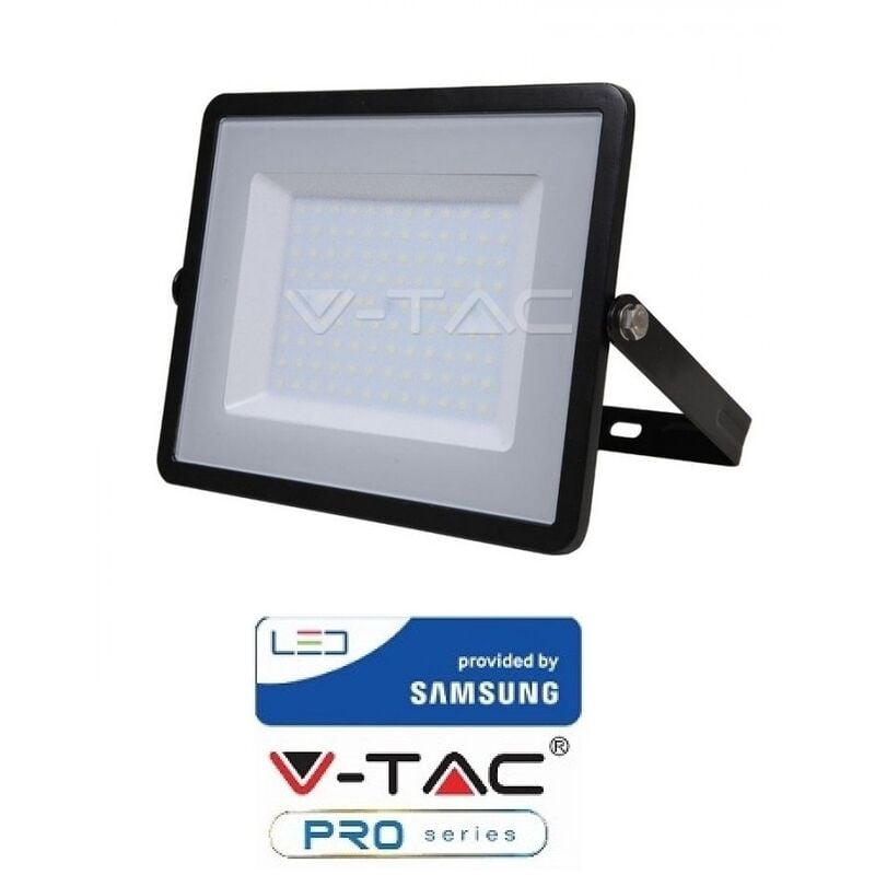 Faro LED V-Tac PRO VT-100 con potenza di 100W adatto all' uso esterno (IP65). Flusso luminoso 8000lm. 3 temperature di colore: Luce Calda 3000K SKU 412, Naturale 4000K SKU 413 e Fredda 6400K SKU 414. Faro LED V-Tac PRO VT-100 con potenza di 100W. Corpo ultra sottile in alluminio pressofuso di colore nero con staffa e cavo di colore nero e copertura in vetro trasparante. Proiettore con tecnologia LED SMD adatto all'uso esterno, grado di protezione IP65. Fascio luminoso di 100°, flusso luminoso di 8000 lm e rapporto di 80 lm/W. Il design slim, lo rende più leggero di un normale faro e più semplice da installare, oltre ad avere un'estetica più accattivante. I prodotti V-Tac PRO utilizzano chip LED Samsung di nuova generazione, garantiscono una durata di 30000 ore, hanno una garanzia di 5 ANNI, un'affidabilità superiore alla media e una più elevata efficienza energetica. 3 temperature di colore: Luce Calda 3000K SKU 412, Naturale 4000K SKU 413 e Fredda 6400K SKU 414. Dimensioni 291x240x30.
