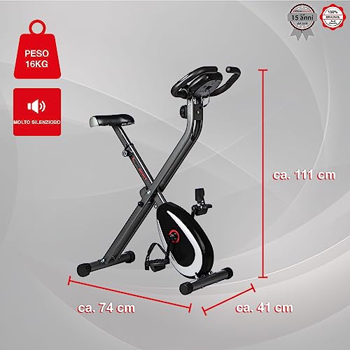 Cyclette pieghevole, home trainer, fitness bike con 8 livelli di resistenza, facile e veloce da montare e smontare - l'originale sviluppata da Ultrasport, leader del mercato delle F-Bike