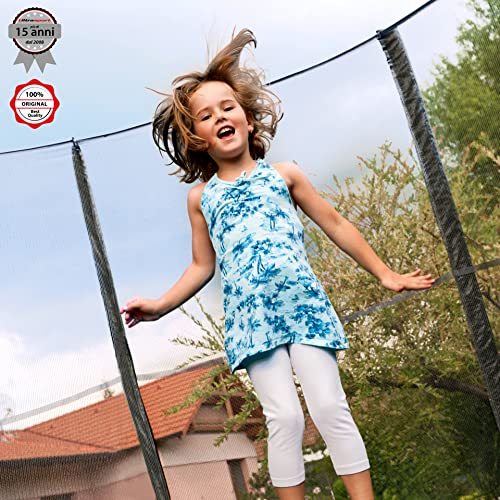 Rete da trampolino disponibile per tutte le dimensioni comuni: Ø 180 cm, 251 cm, 305 cm, 366 cm e 430 cm - Altezza della rete: ca. 180 cm - Colore della rete di sicurezza del trampolino: Nero