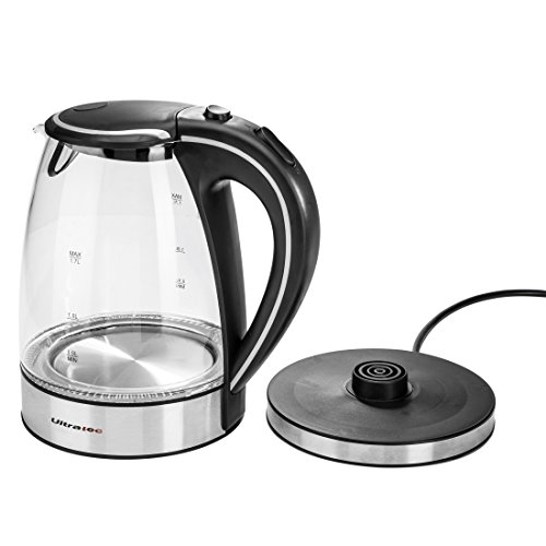 Moderno Wireless 2.200 Watt bollitore con acciaio inossidabile Socket e pratico vetro contenitore da 1.7 litri in vetro di sicurezza resistente al calore