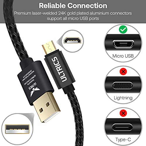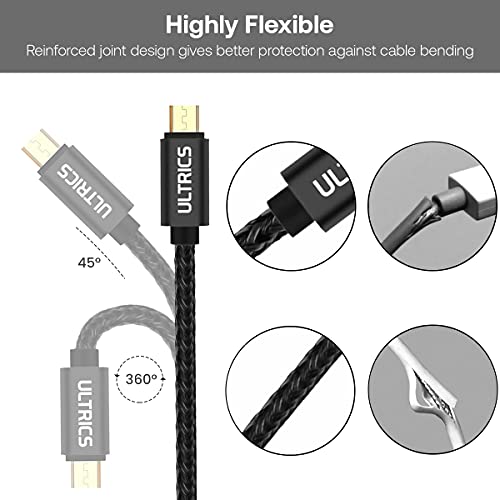 ULTRICS Cavo Micro USB Carica Rapida 1M, Nylon Intrecciato Alta Velocita USB 2.0 Dati Trasferimento Cavi Android Compatibile con Samsung Galaxy S6/ S7 Edge, Nokia, LG, Xbox One, PS4 e altro - Nero