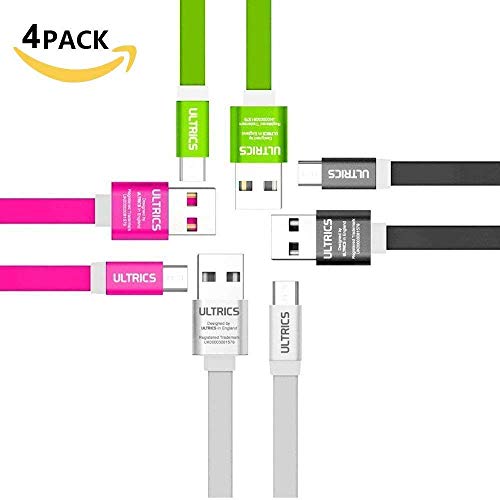 ULTRICS Cavo Micro USB Piatto 1M (4 Pack), Premium Quality TPE USB 2.0 Cavi Dati, Android Caricabatterie Ricarica Rapida Maschio Data Cable Compatibile con Samsung J7/J5/S6/S7 Edge LG Tablet