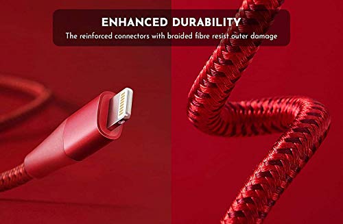 ULTRICS - Cavo di ricarica per iPhone 2 m (certificato Apple MFi) da USB A a cavo Lightning in nylon intrecciato, compatibile con iPhone 11 Pro/XS Max/XR/X/8/7/6s/6 Plus/5s, iPad, iPod, colore: Rosso