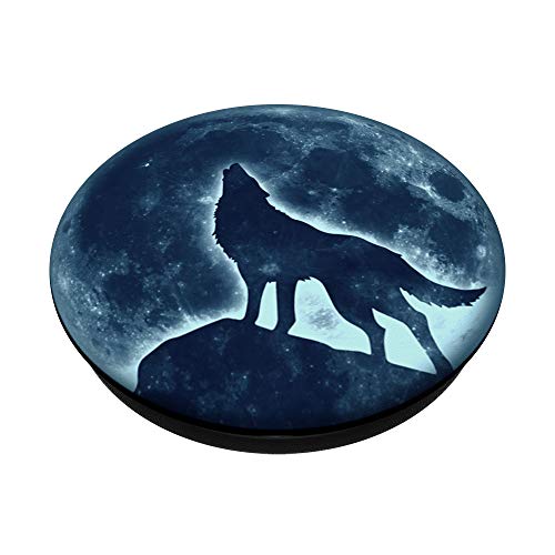 Lupo che ulula, luna piena, silhouette, animale, natura PopSockets PopGrip Intercambiabile