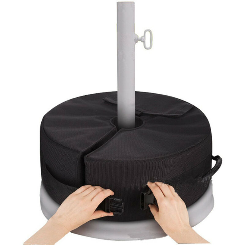 Umbrella Base Weight Bag Weatherproof Parasol Sand Bags with Side Slot Opening for Outdoor awnings patio umbrella with stand Feature: Made of high quality oxford cloth, waterproof, durable, and resistant to sun, it will not fade or crack over. Fixed straps and hook&loop design, make it stronger and keep the pole of the parasol standing stably. Light weight and folding design, convenient to carry and use. It can adjust umbrella stand size as well. Wide opening for easy and quick filling with sand, its fastener cover is easy to seal the opening and won't leak sand. Adopting the sealing method of hook and loop for simple and convenient operation. And handles at both sides help lift the bag with sands loaded. This is suitable for courtyard umbrella, tent and billboard and so on to avoid them being knocked down by wind or children to protect your family and home better. And it can be folded and stored when not in use, which is convenient, environmental and doesn't occupy space. It is