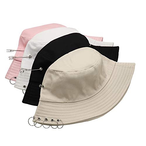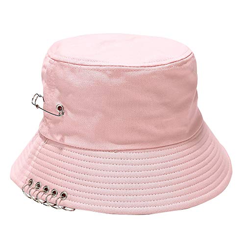 Umeepar Cinque Anello & Pin di Sicurezza Decor 100% Cotone Secchio Cappello Pieghevole Spiaggia Sun Hat per Le Donne Uomini, Rosa, Taglia Unica