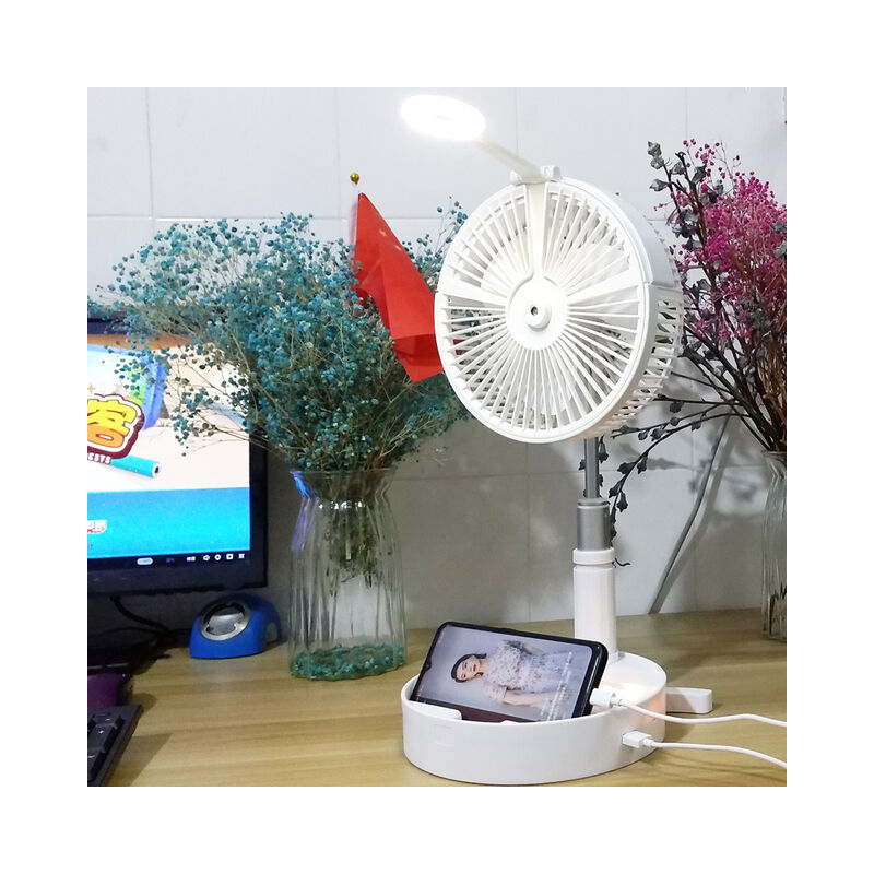 Descrizione: Portatile a scomparsa ventilatore da pavimento Built-in full-capacità di 7200 mAh della batteria, ci vogliono 4 ore per caricare, E la durata della batteria può essere fino a 6-24 ore Spray per umidificare e rifornire di acqua per raffreddare, riempire con acqua una volta, spray per 4 ore Lampada da tavolo funzione di illuminazione, interruttore di comando separato 2 ingranaggi Funzione ausiliaria di luce di notte di sonno, interruttore 2 blocchi separatamente Funzione del basamento del telefono Tesoro di ricarica funzione, la base ha un interfaccia di uscita di ricarica veloce, veloce di ricarica per i telefoni cellulari Specifiche tecniche: Parametri del prodotto Il consumo di energia 1st gear: 1.3W 2nd gear: 2.8W 3rd gear: 4.8W Ingresso di ricarica 5V / 2A Mobile di potere di uscita 5V / 1A Velocità del vento 1st gear: 2.3M / S2 gear: 3.0M / S3 gear: 4.0M / S Capacità della batteria: 7200mAh Utilizzare il tempo: 6-24 ore Tempo di ricarica: più di 4 ore Singolo peso del