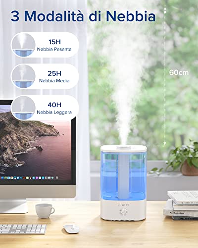 3.5L Umidificatore ad Ultrasuoni Maxcio Nebbia Regolabile Funzione Timer Humidifier Super-Silenzioso 28dB Sicuro per Bambini Umidificatore Piante Arredamente Camera da Letto Adatto a Casa